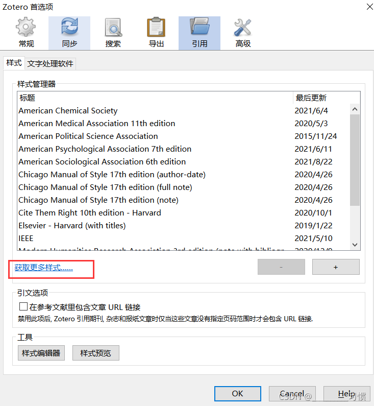 如果没有我们想要的格式,可以手动进行添加,比如在首选项里,找到获取更多样式,