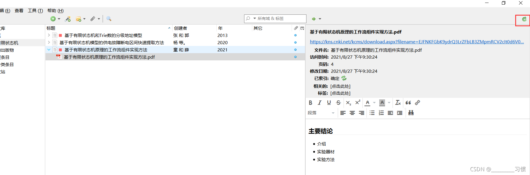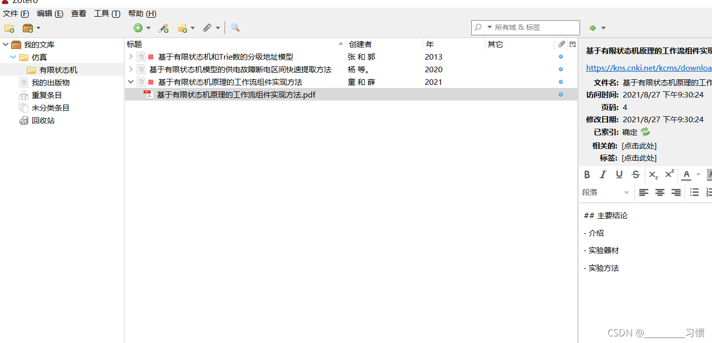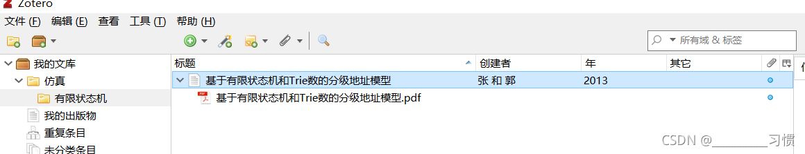 然后在 zotero 软件中,我们就可以看到这篇文献了,如下图所示