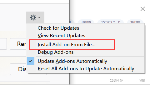打开 Zotero -> 工具 -> 插件 -> 右上小齿轮图标 -> Install Add-on From File … -> 选择下载好的 xpi 文件。