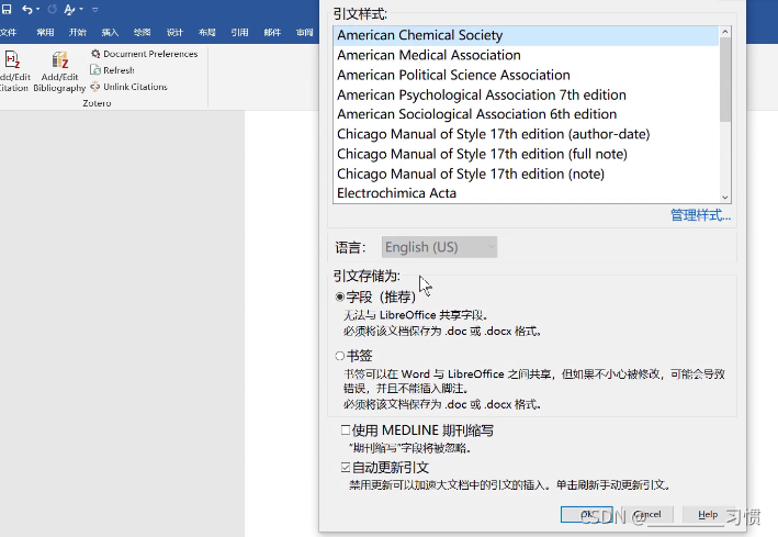 在需要添加索引的地方,点击 add citation,会让我们选择引用的格式。