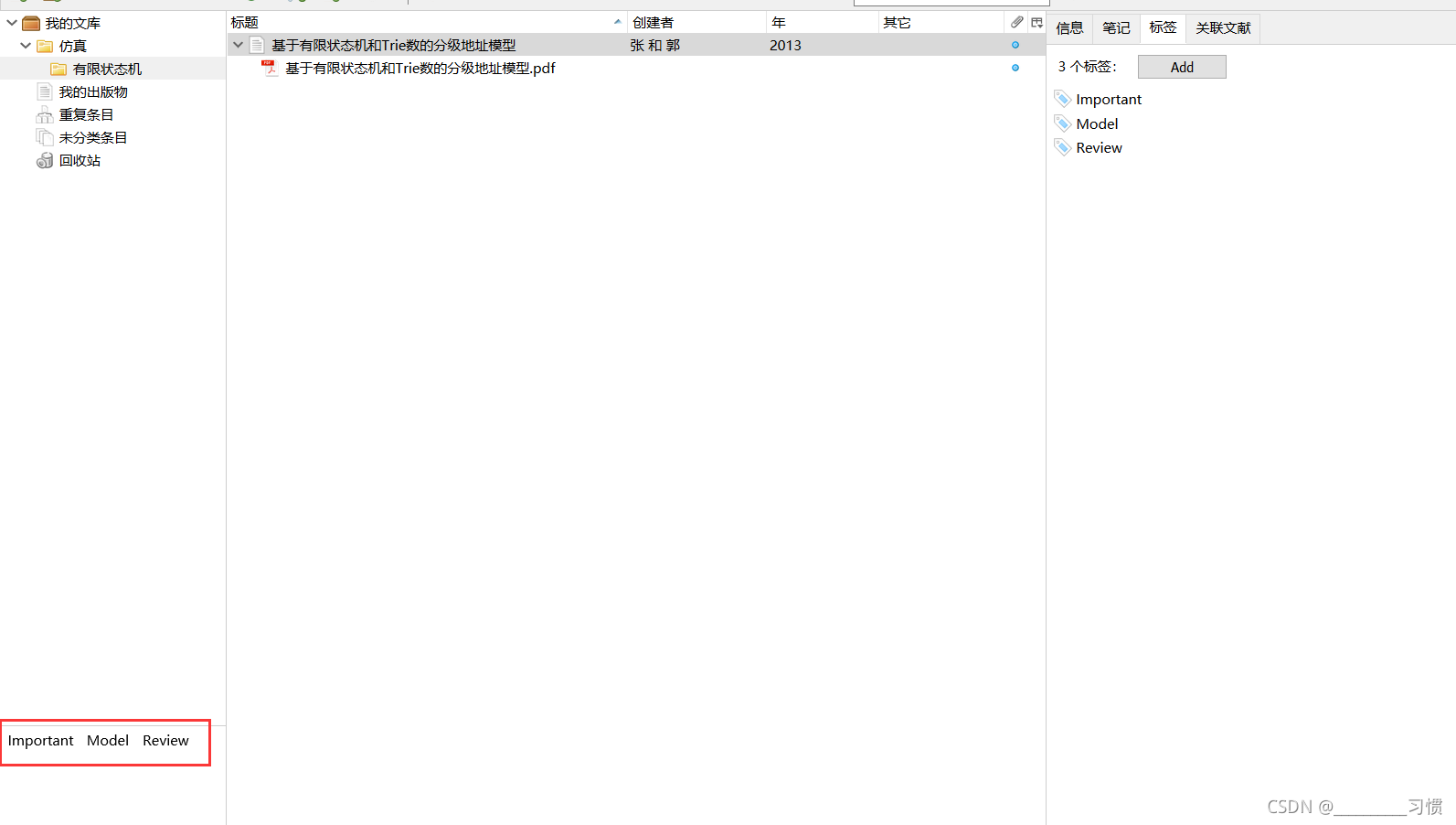 设置完颜色后,这个标签就会含有编号 (假如编号是 “1”),然后鼠标选中某一条目,键盘上按某一编号 (按 “1”),就会自动加上这个标签。