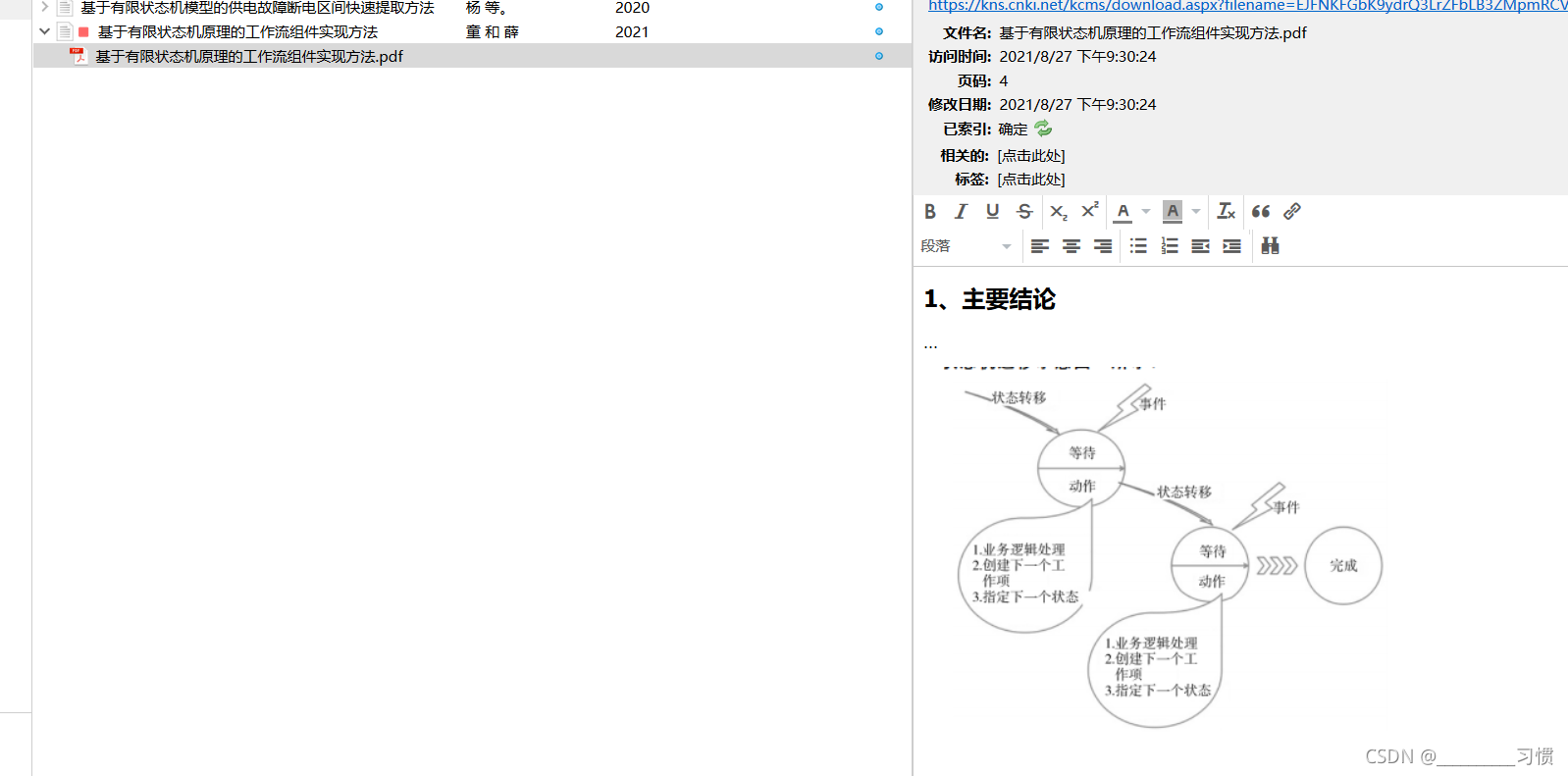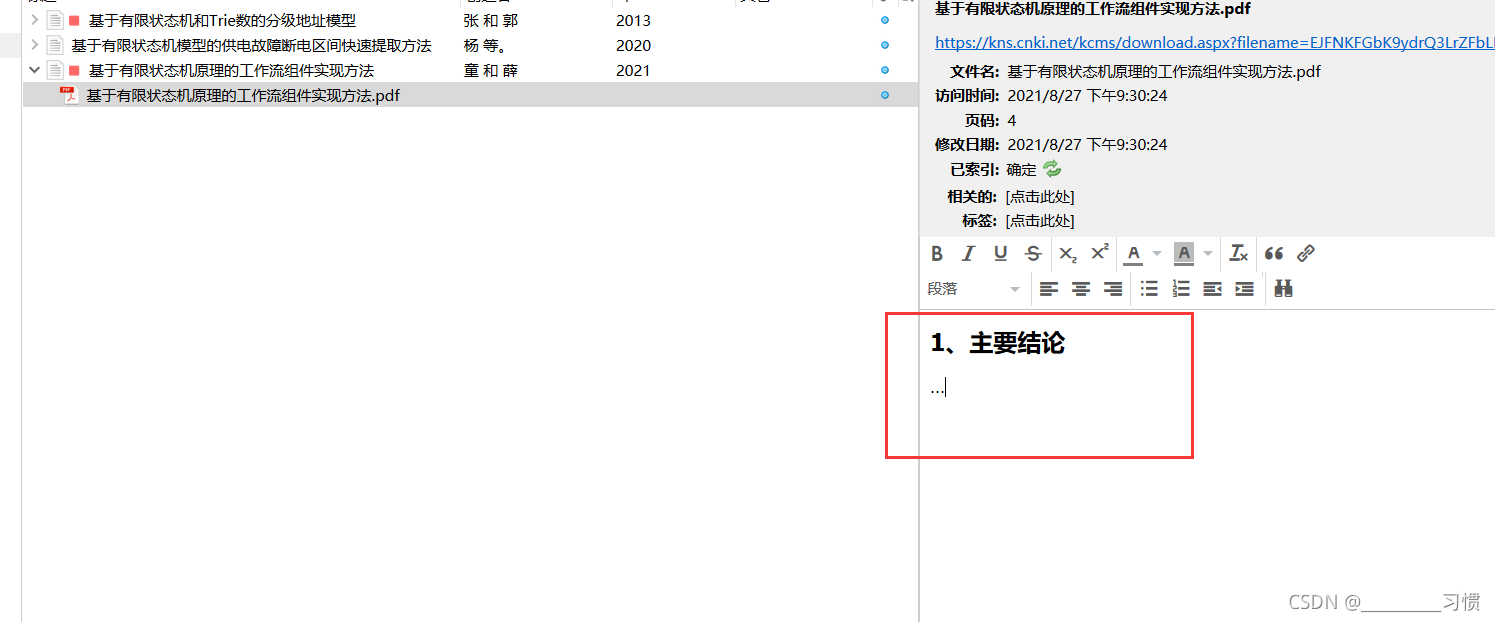 我们可以点击 pdf 文件,在右侧给文献添加笔记
