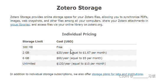 不过,zotero 的免费功能只有 300MB,超过 300MB 同步就会出现问题,文献比较多就需要其他方法了,比如切换其他的网盘等,其他同步方法在进阶篇进行描述。