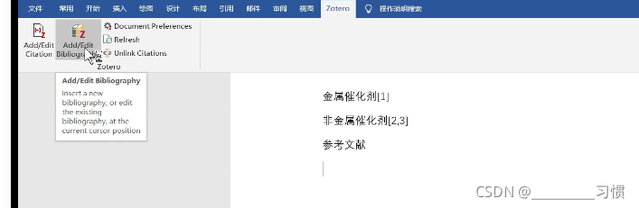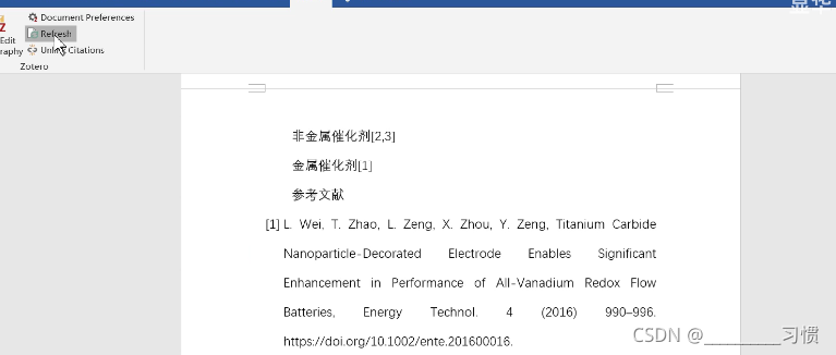 如果你调整了一下文献的顺序,只要点一下 Refresh 更新。