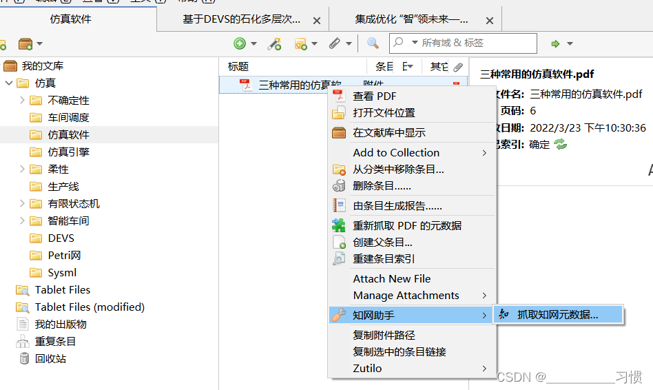 将下载好的 pdf 文件拖拽到 zotero 中,然后右键知网助手——> 抓取知网云数据