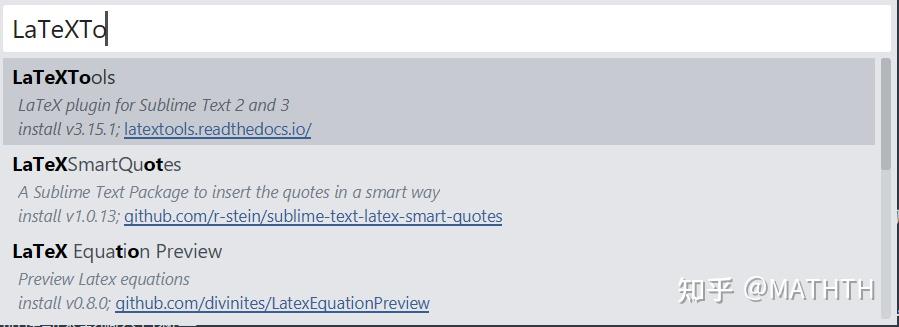 LaTeX-cwl 是 LaTeX 代码自动补全工具,下载方法也是 Ctrl+Shift+P→install package→LaTeX-cwl 回车即可下载安装.