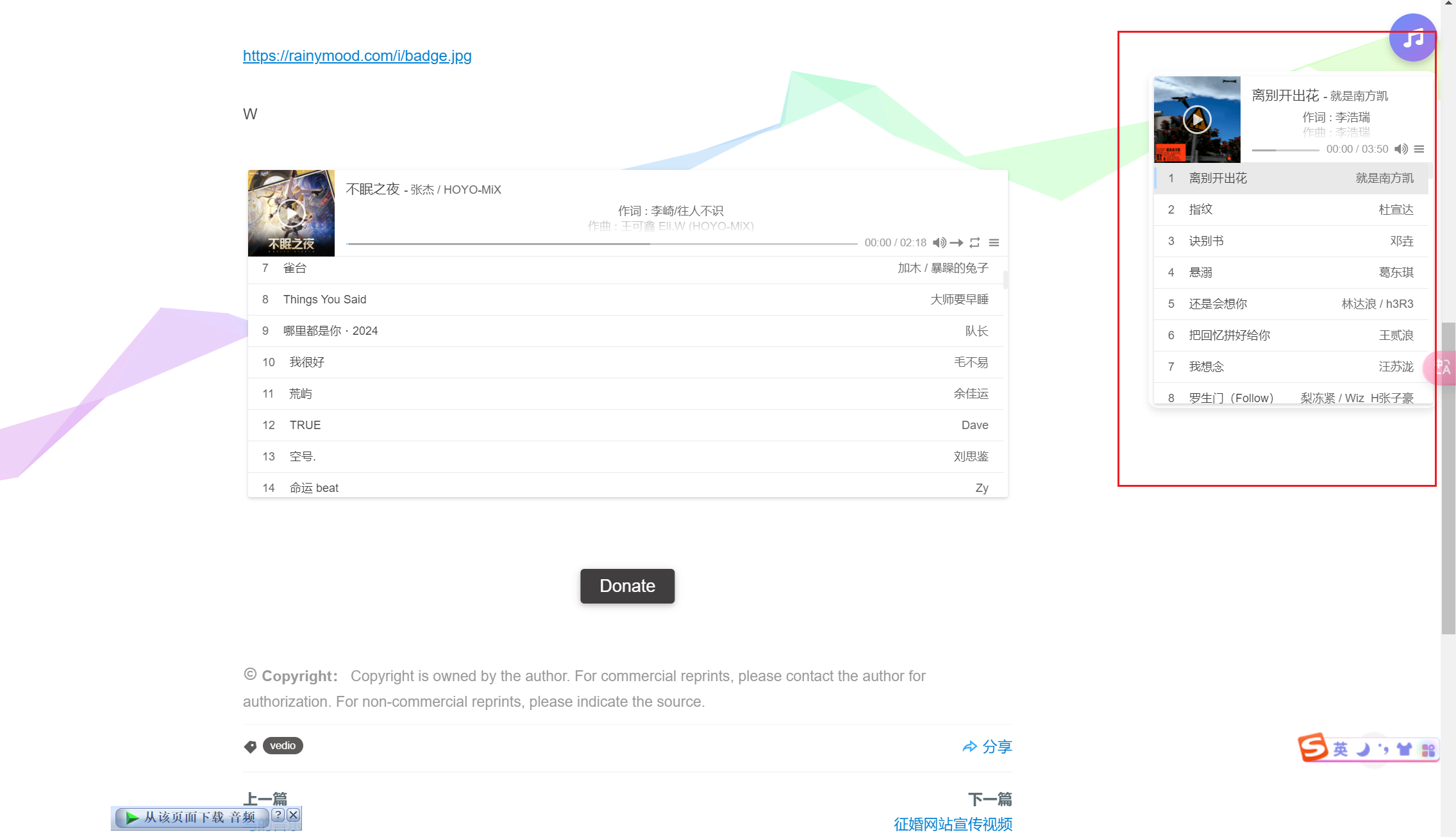 这种方式简单快捷,但是iframe在iOS设备上效果不好,而且平台也会限制版权,有些版权存在争议的音频是不提供外链播放的,如果遇到的话,建议把对应的音频下载后上传到个人歌单,重新生成外链。