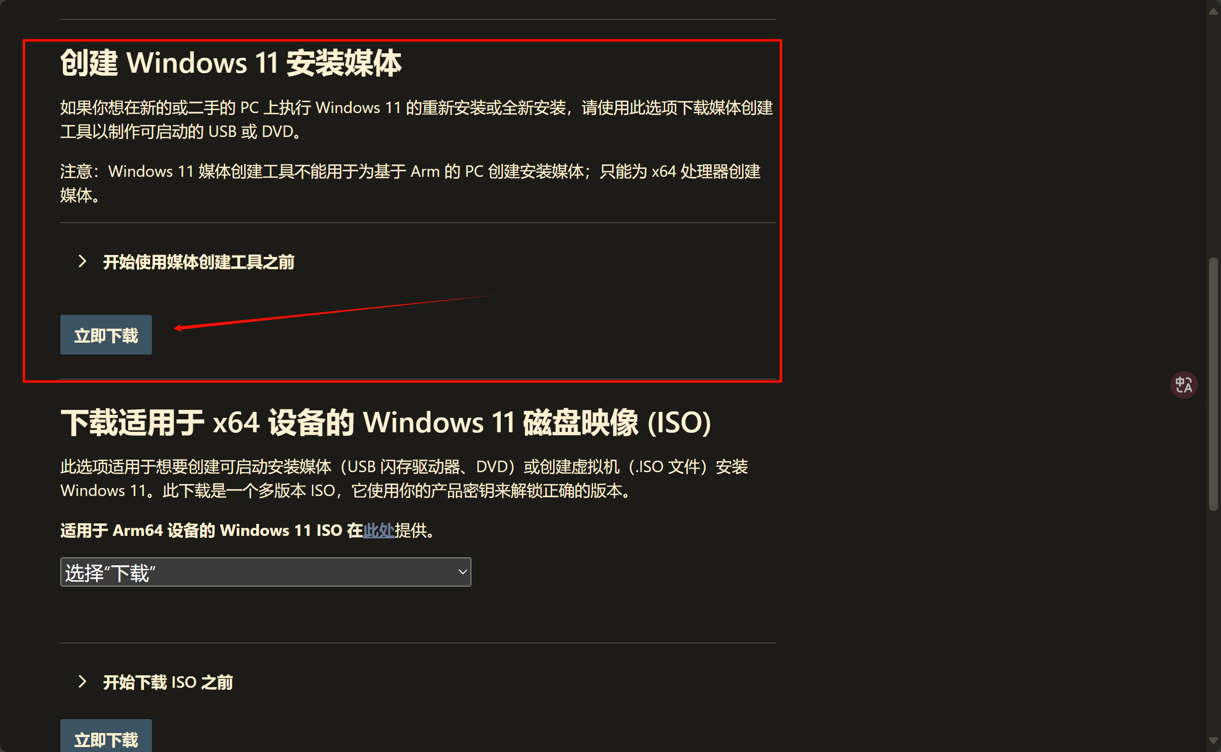 将下载一个Windows官方的U盘制作工具,选择烧录到U盘即可。