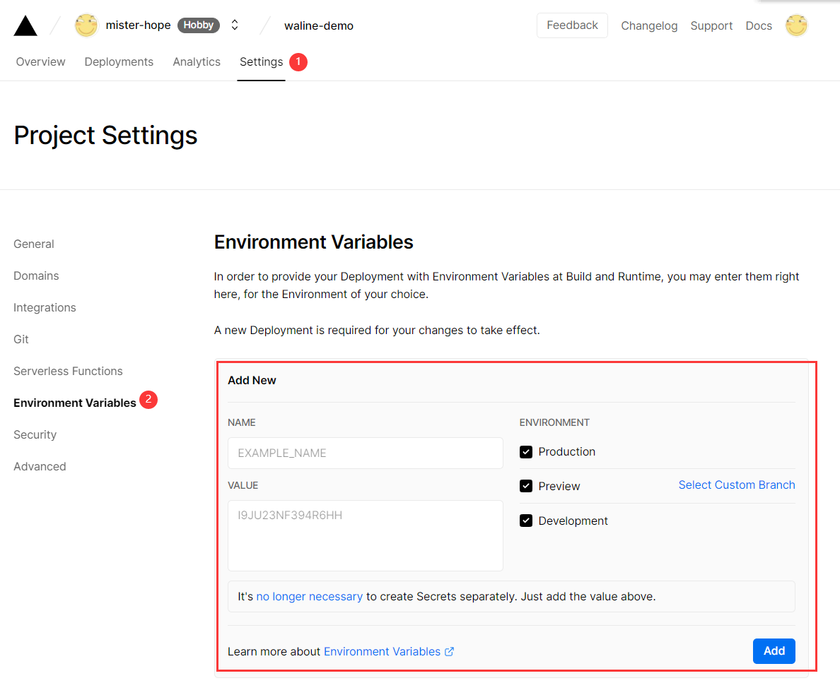 如果你使用 LeanCloud 国内版,请额外配置 LEAN_SERVER 环境变量,值为你绑定好的域名。