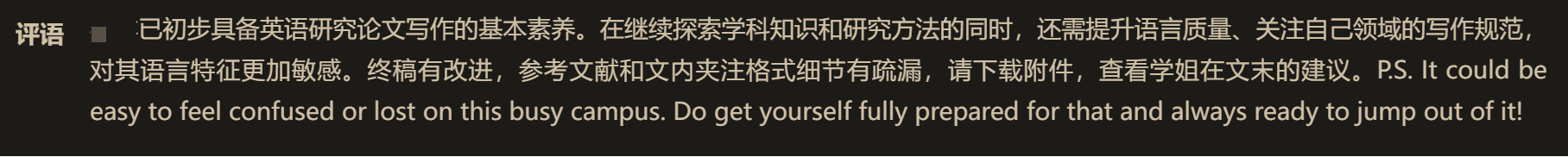 现在再来看终稿作业的这段评语,真的是非常的感人。